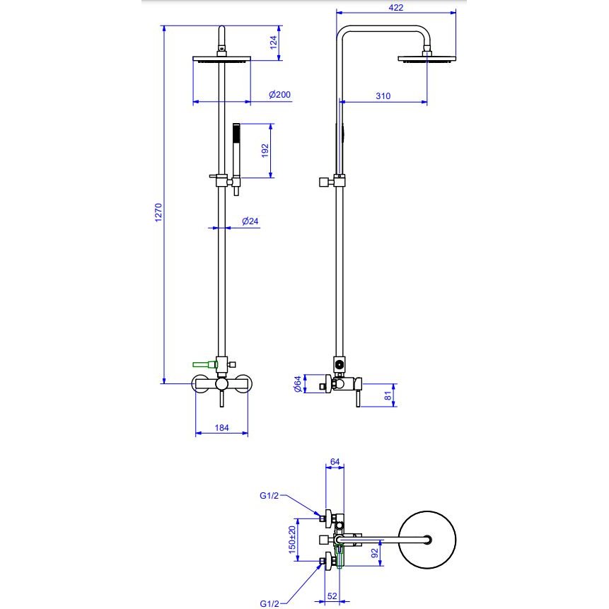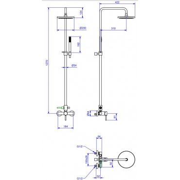 BUGNATESE KOBUK EXTERNAL SHOWER MIXER WITH RISER AND CONNECTION 3/4