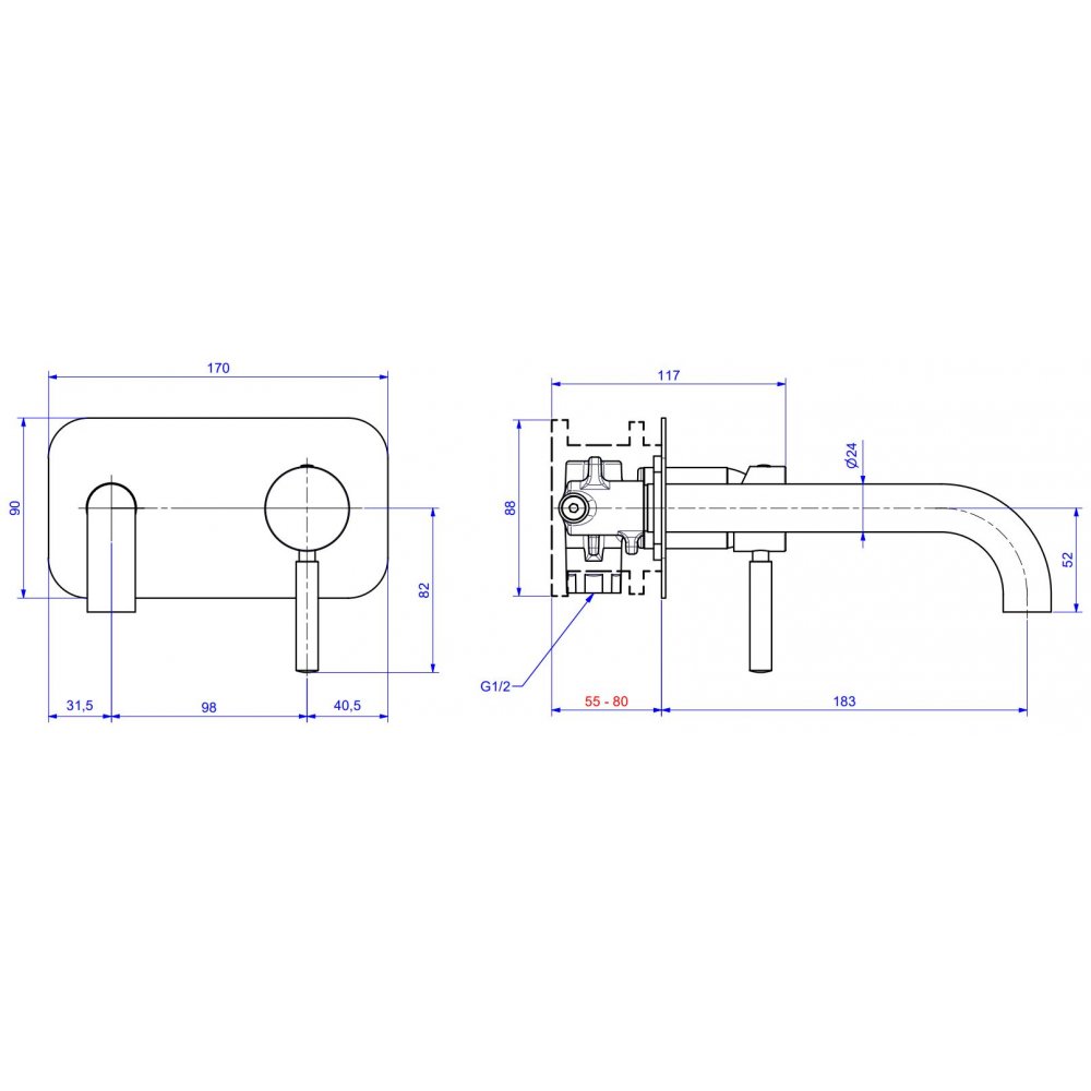 BUGNATESE KOBUK WALL BASIN MIXER SWIVEL SPOUT 19 CM
