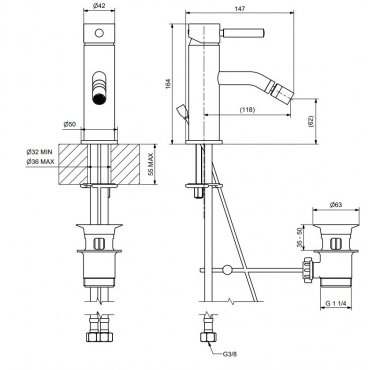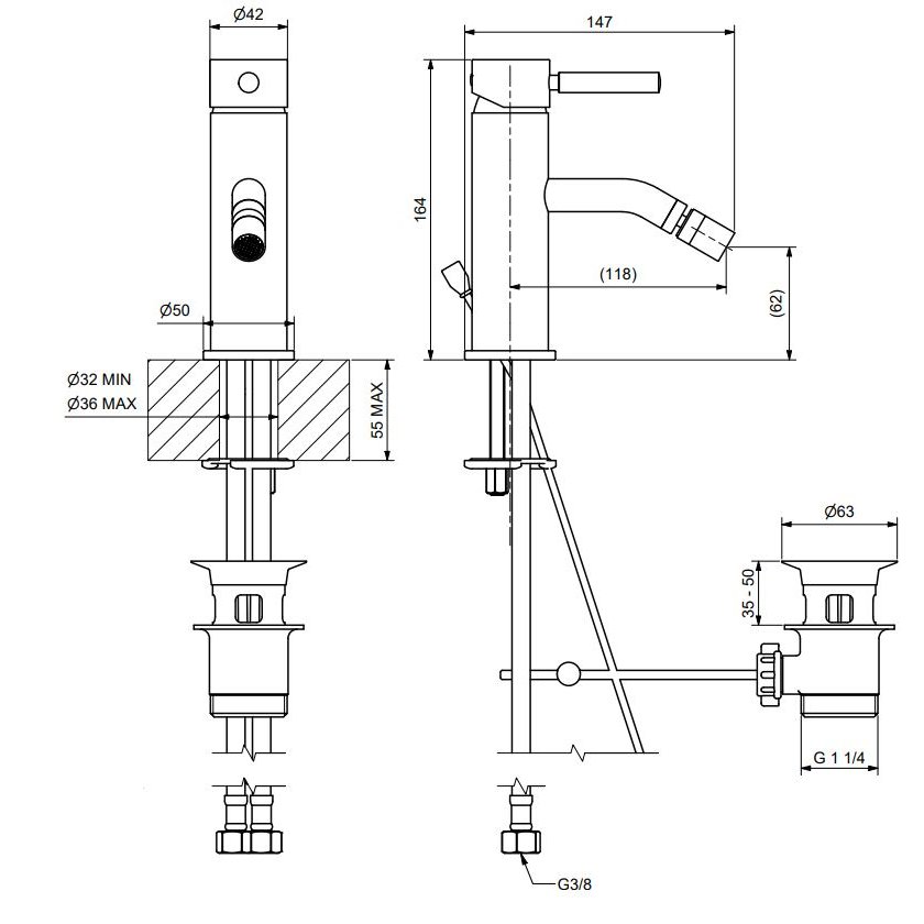 BUGNATESE KOBUK FIX BIDET MIXER WITH POP-UP CHROMED