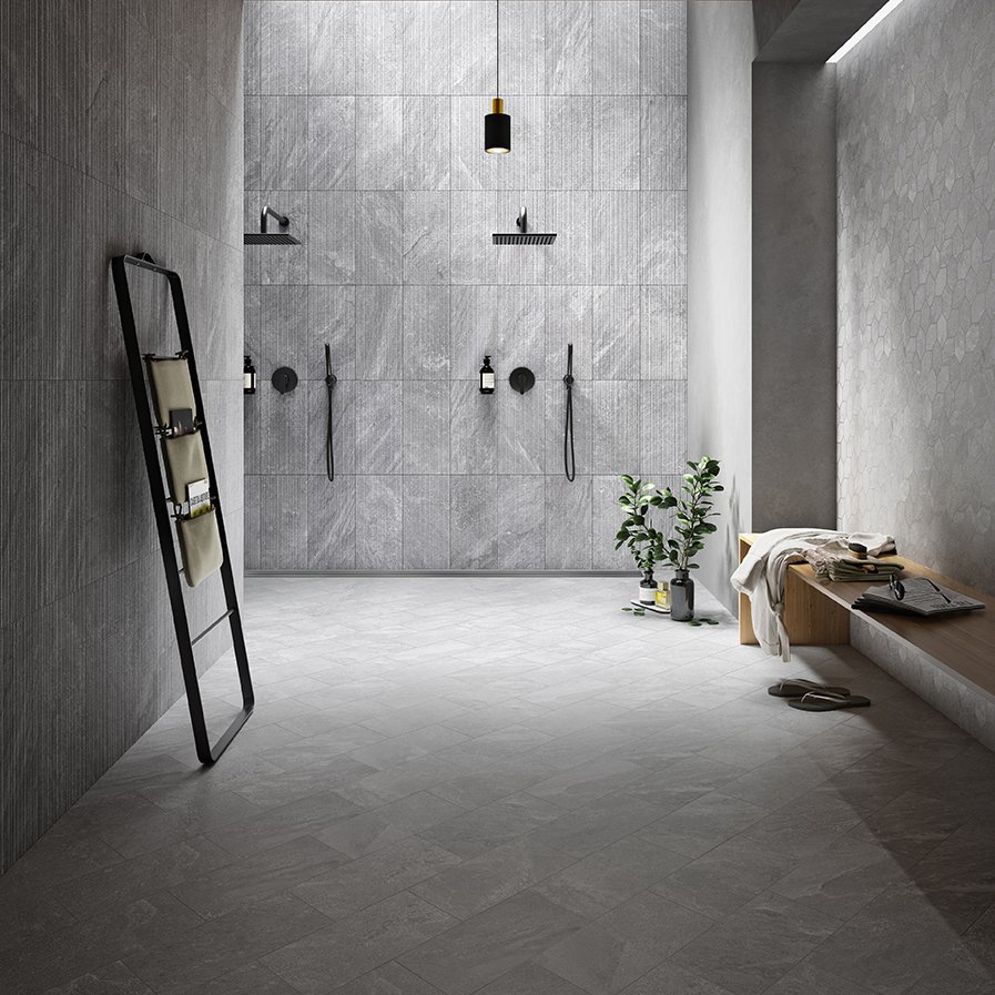 Recode, the new porcelain stoneware collection by Pastorelli, is inspired by quartzite, a natural stone that intersects in the material in the form of scales.
