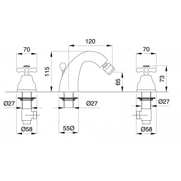 BUGNATESE OLD 800 BIDET MIXER WITH SPOUT AND POP-UP CHROMED