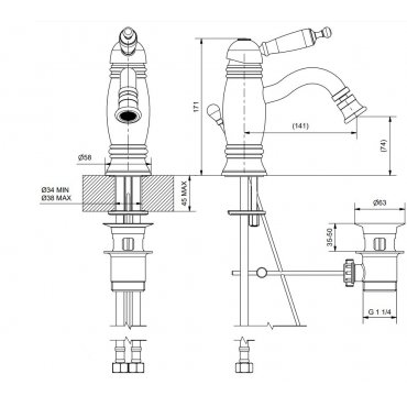 BUGNATESE OXFORD FIXED SPOUT BIDET MIXER WITH POP-UP CHROMED