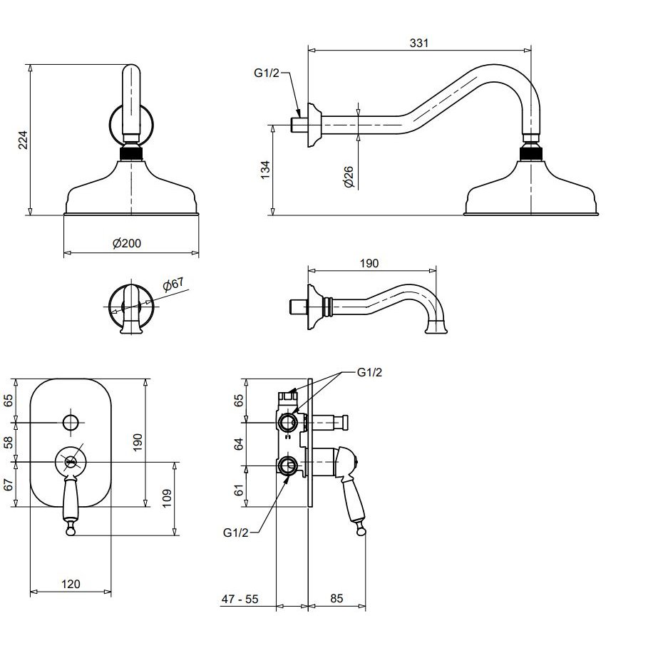 BUGNATESE OXFORD BUILT-IN MIXER WITH SPOUT AND SHOWER ARM CHROMED
