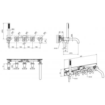 BUGNATESE RODOS BUILT-IN BATH WITH SPOUT AND DUPLEX KIT CHROME