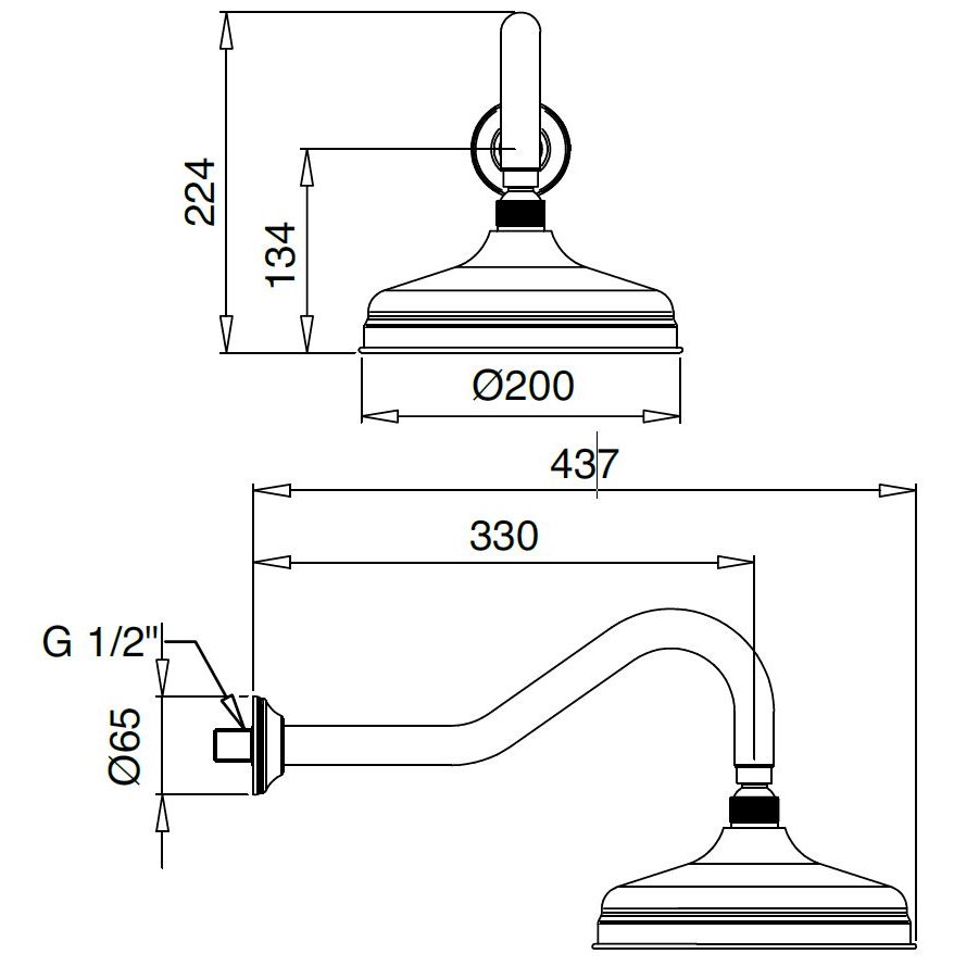 BUGNATESE OXFORD SHOWER ARM WITH ANTIQUE SHOWER HEAD CHROME
