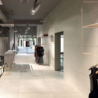 Konkrete Project, a porcelain stoneware collection by Ceramiche Castelvetro, through the raw material, gives the environments an industrial and contemporary touch.