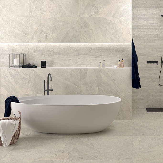 Slate Stones is the elegant stone-effect collection in porcelainstoneware by Ceramiche Castelvetro that presents the colors Piombo, Grigio and Antracite in the sizes 60x120, 60x60 and 30x60cm with a thickness of 10mm and in the format 100x100 with a thickness of 8,5mm. It is also available in the 2cm thickness only for the sizes 60x60, 100x100 e 60x120cm