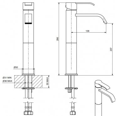 GABOLI FRATELLI PAPIRO WASHBASIN MIXER HIGH SWIVEL SPOUT AND POP-UP WASTE