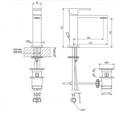 mixer single hole single control sink basin modern bathroom with pop-up chromed with flexibles a lever one lever single lever 9113