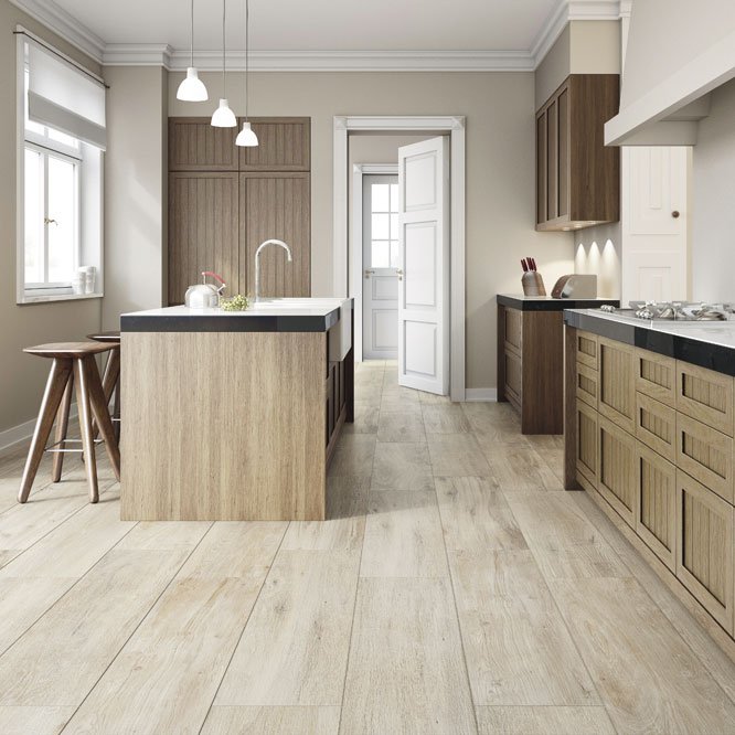 The different shades of Vogue by CeramicheCastelvetro make this wood-effect porcelain stoneware collection suitable for all types of domestic environments.