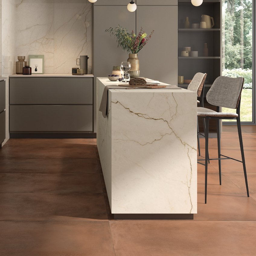 On the one hand, the warmer colors linked to tradition such as Rosso and Ocra and on the other, the colder ones such as Argento and an extremely original nuance such as Blu di Prussia. Terra comes to the market in a single thickness of 10 mm and 4 sizes 60X120, 90X90, 60X60 and 30X30.