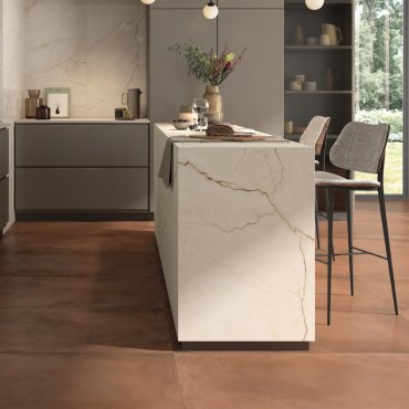 Terra is a line of La Faenza flooring and interior coverings in porcelain stoneware with a colored mass terracotta effect.