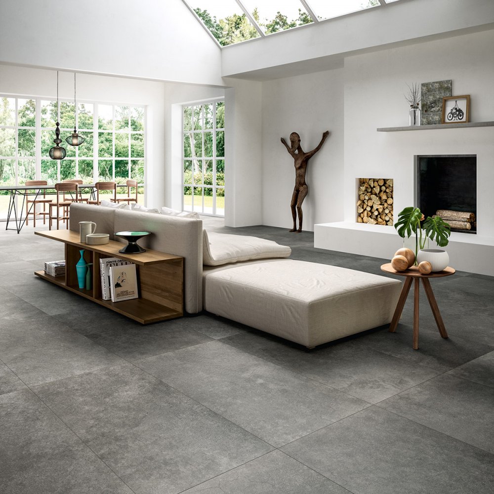 The Mood porcelainstoneware collection by Edimax CeramicheAstor offers a faithful interpretation of the refined variants of cement and reproduces the raw material which, scratched by time, shows its cracks and marks.