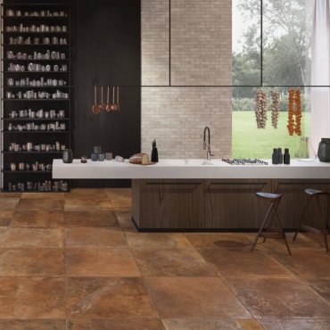 Country residences, with their charm and typical old-world living, are rediscovered in Vignoni, the new porcelain stoneware collection by Ceramiche Del Conca that reinterprets the warm, enveloping effect of terracotta.