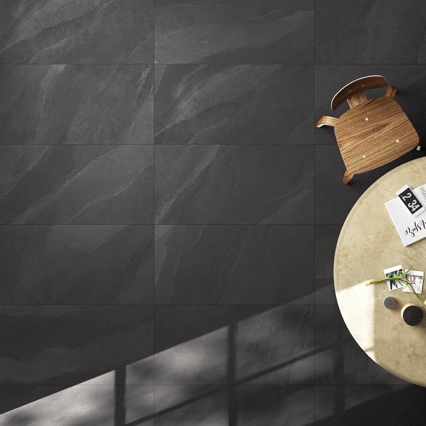 • SUPERGRES TILE LAKE STONE BLACK NATURAL RECTIFIED 60X60