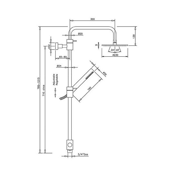 GABOLI FRATELLI WELLNESS SHOWER COLUMN WITH SHOWERHEAD AND ROUND HAND SHOWER