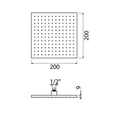 GABOLI FRATELLI WELLNESS 20X20CM SQUARE SINGLE-JET SHOWER HEAD WITH 1/2" JOINT