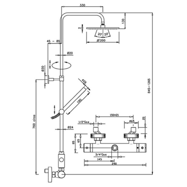GABOLI FRATELLI WELLNESS SHOWER COLUMN WITH SQUARE SHOWERHEAD AND HANDSHOWER