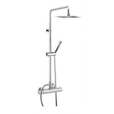 Brass shower column with ultra-slim 200x200mm steel shower head. 150 cm double clip flexible hose with square abs hand shower WITH "Smart" thermostatic mixer.