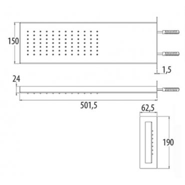 Rectangular wall-mounted shower head in stainless steel anti-limescale 150x501x24 mm with rain jet chrome chromed RU502