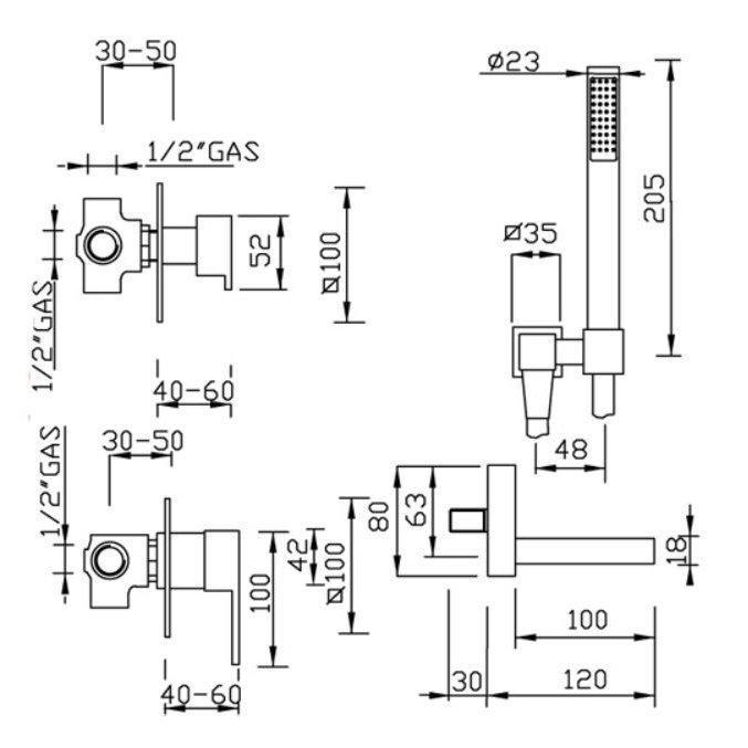 GABOLI FRATELLI NEW SPACE EXTERNAL BATHTUB MIXER WITH WATERFALL AND SHOWER