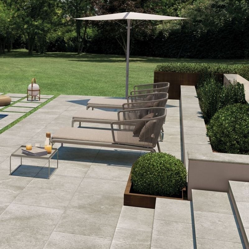 porcelain stoneware stone effect floor tile outdoor garden avenue balcony structured rectified first choice R11 9mm 0,90cm EPS3 floor heating