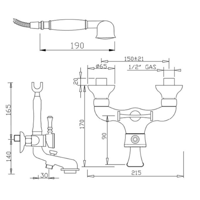GABOLI FRATELLI BETTY EXPOSED BATH MIXER WITH SHOWER