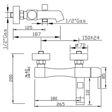 GABOLI FRATELLI CHARLOTTE BATH MIXER WITH SUPPORT AND SHOWER