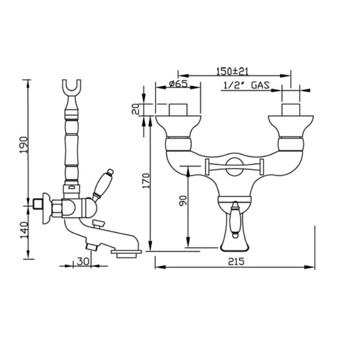 GABOLI FRATELLI PARENTESI EXPOSED BATH MIXER WITH SHOWER