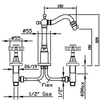IB RUBINETTERIE MARMO THREE HOLES BIDET MIXER WITH ADJUSTABLE SPOUT