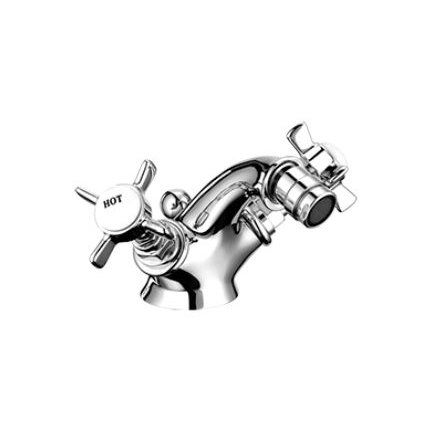 Single-hole bidet mixer with pop-up waste and ceramic valves.