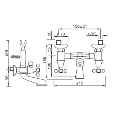 GABOLI FRATELLI NOA EXPOSED BATH MIXER WITH SHOWER KIT WITHOUT DUPLEX
