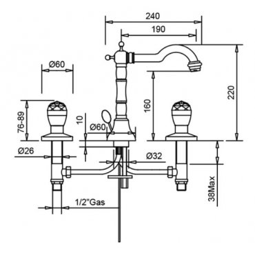 GABOLI FRATELLI MY BIJOUX 3 HOLE WASHBASIN MIXER WITH SWIVEL SPOUT AND POP-UP