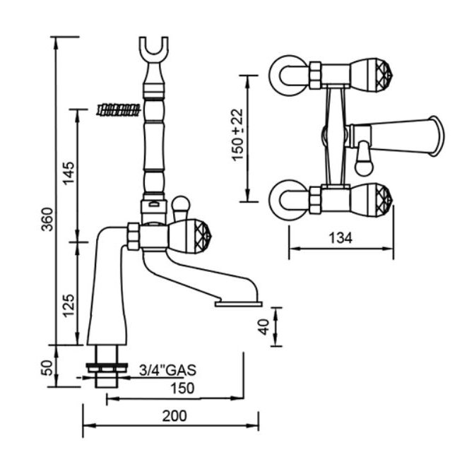 GABOLI FRATELLI MY BIJOUX EXPOSED BATH MIXER WITH WITH DECK-MOUNTED HOLDER