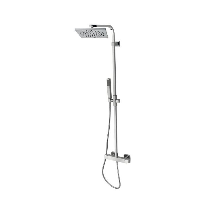 Shower set including brass shower pipe 20 x 20 mm section – CUBE 260 x 260 mm shower head – CUBE hand shower – orientable wall bracket – double interlock brass hose 150 cm with ½” FF connection and conical nut – mixer with integrated diverter.