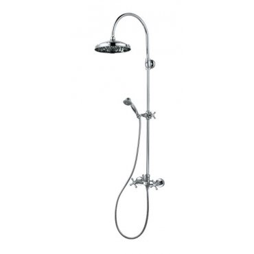 Shower Set including: Shower Pipe Ø 20 mm - Shower head Retrò-Antikal Ø 230 mm - Retrò-Gom Handshower w/orientable bracket - Double interlock brass hose cm 150 1/2” FF conical - Exposed Shower mixer with diverter. Installation: Shower or bathtub.