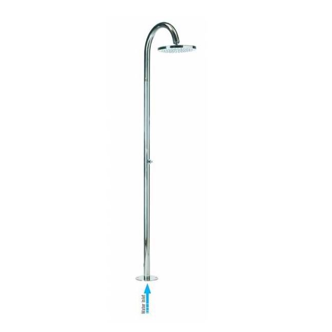 Oki stainless steel AISI 316 outdoor shower column with self closing valve, ¾” M coupling for external water inlet. Version with cold water inlet grounded in the earth