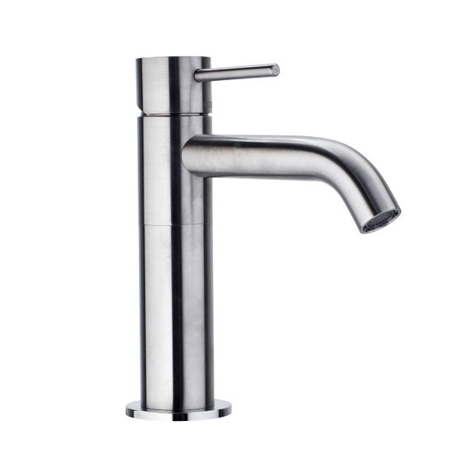 Stainless steel single lever basin mixer without pop-up - Polished stainless steel.