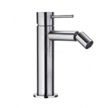 Stainless steel single lever bidet mixer without pop-up - Polished stainless steel.