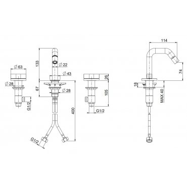 QUADRO DESIGN VALVOLA01 3-HOLE BIDET MIXER WITH SWIVEL SPOUT