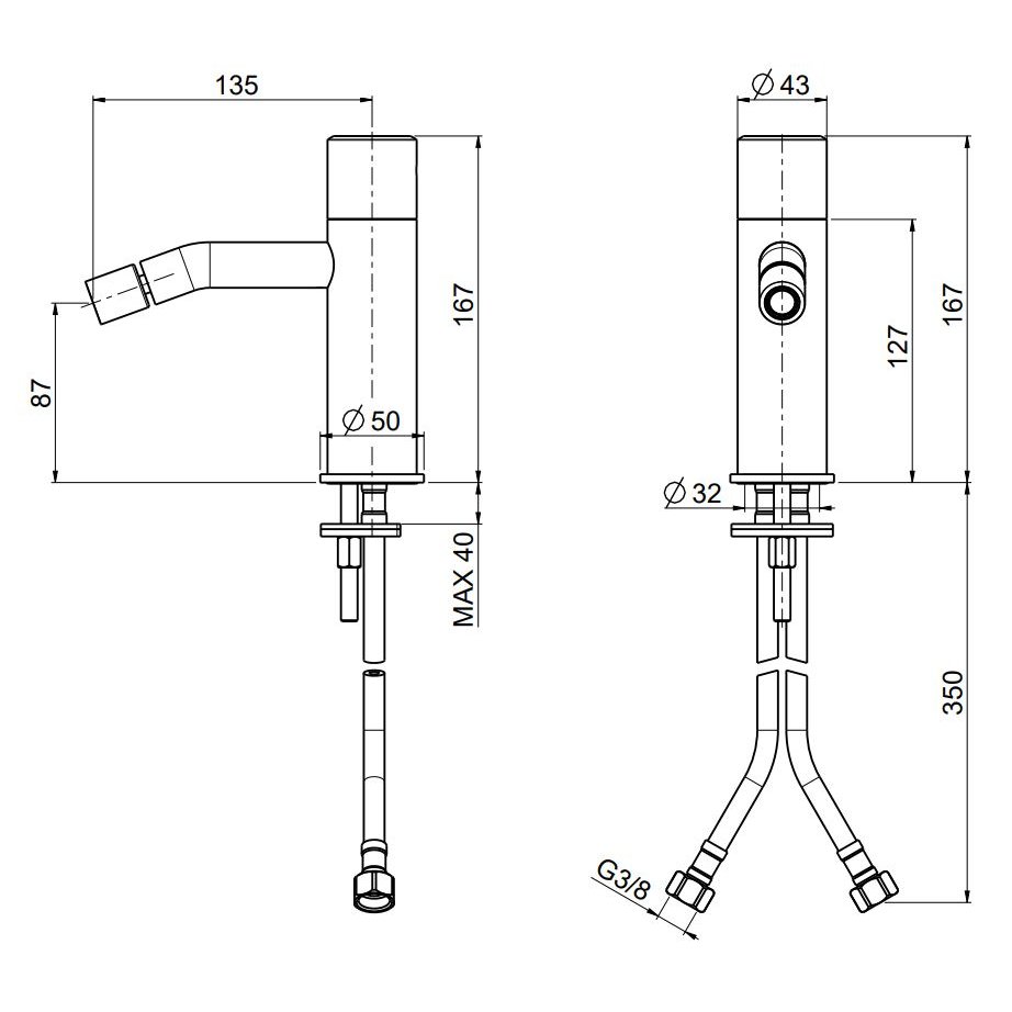 QUADRO DESIGN STEREO SINGLE-HOLE BIDET MIXER H 167 MM