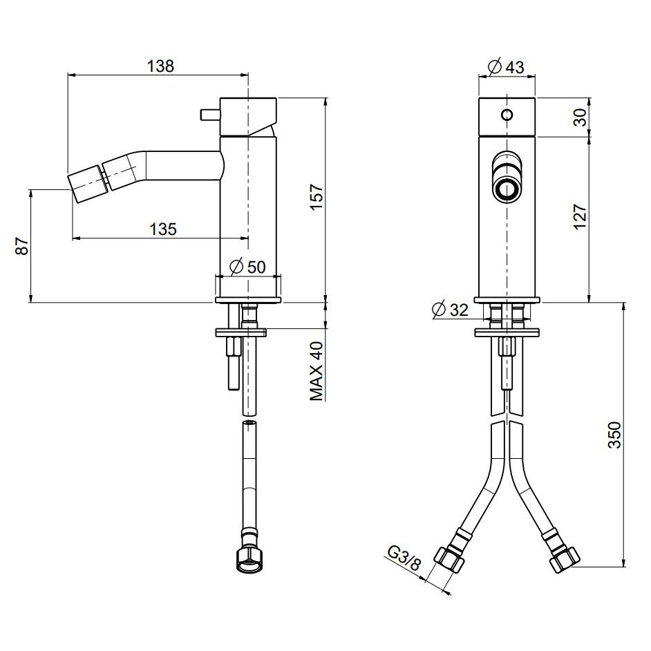 QUADRO DESIGN SOURCE SINGLE-HOLE BIDET MIXER H 157 MM