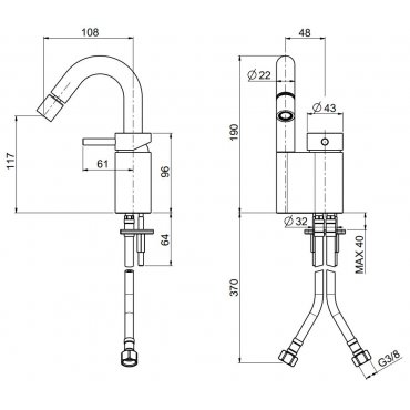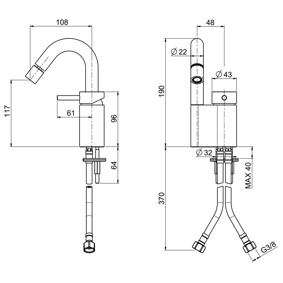 QUADRO DESIGN OTTAVO SINGLE-HOLE BIDET MIXER H 190 MM