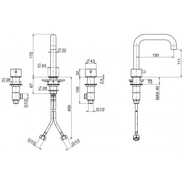 QUADRO DESIGN OTTAVO 3-HOLE WASHBASIN MIXER H 172 MM