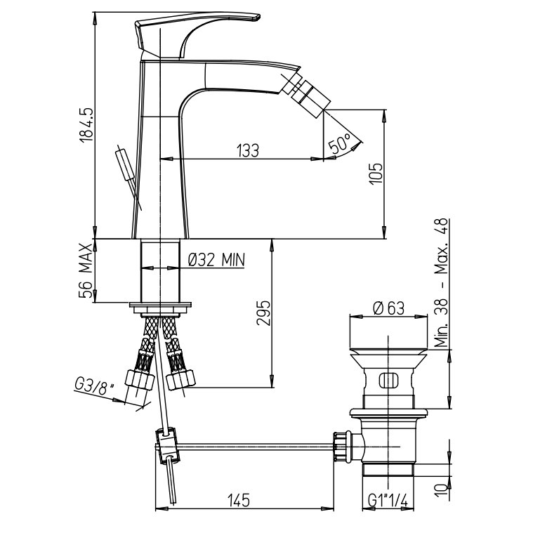 PAINI LADY SINGLE-LEVER BIDET MIXER WITH POP-UP WASTE