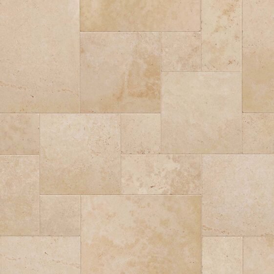 Pietra di Rapolano and Perlato di Sicilia with a worn effect, Travertino Navona and Marmo Primavera with a modern style. The series is enriched with decorations and mosaics.