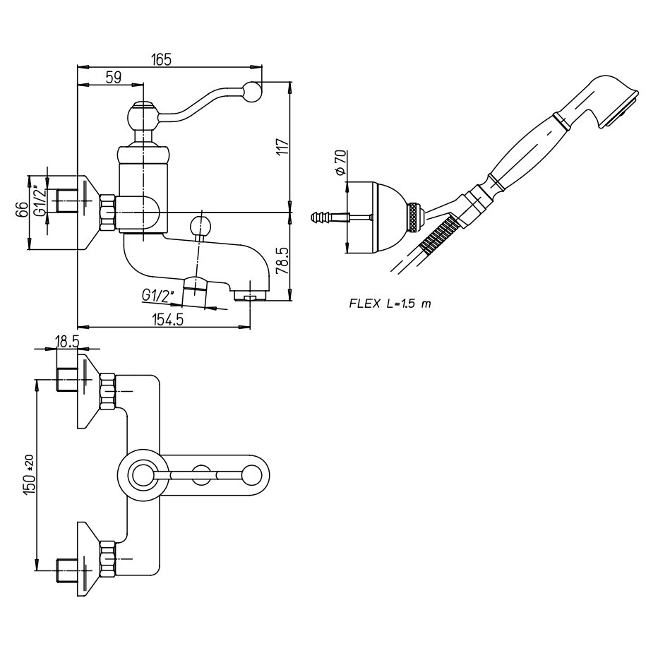 PAINI DUOMO SINGLE LEVER BATH-SHOWER MIXER WITH ADJUSTABLE SHOWER KIT