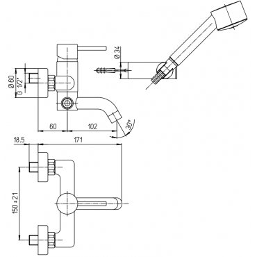 PAINI COX SINGLE LEVER BATH-SHOWER MIXER WITH ADJUSTABLE SHOWER KIT