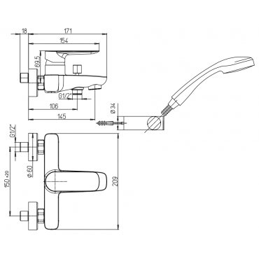 PAINI NOVE SINGLE LEVER BATH-SHOWER MIXER WITH ADJUSTABLE SHOWER KIT