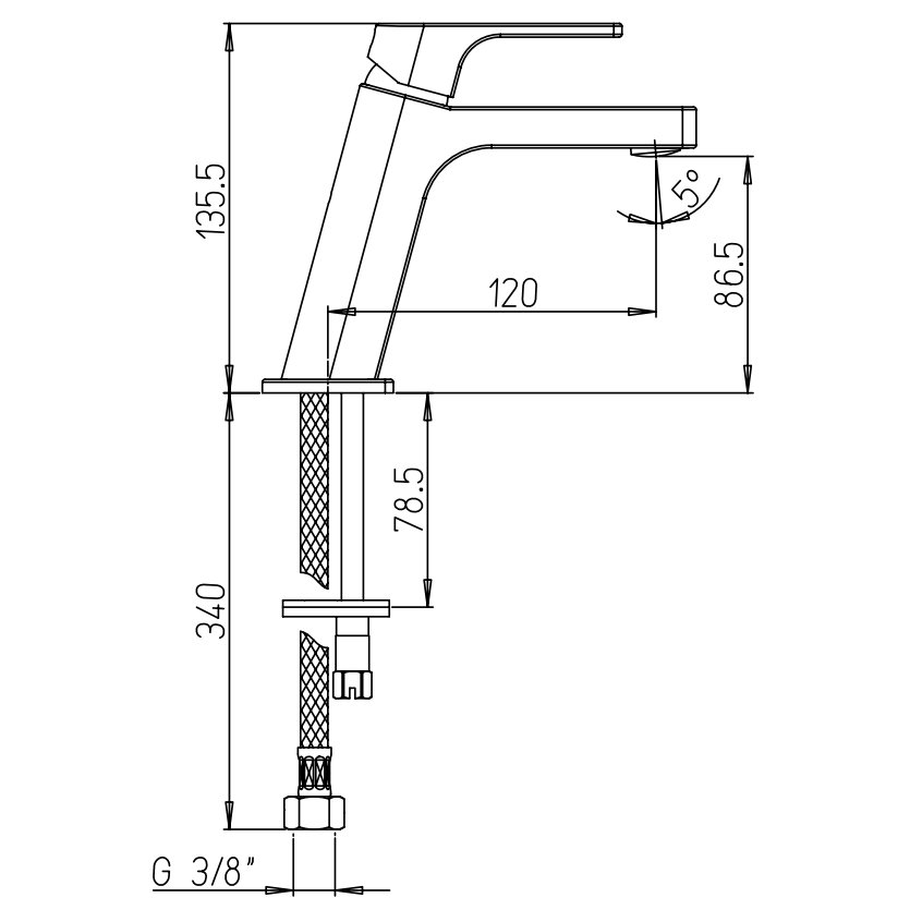 PAINI ATACAMA SINGLE-LEVER BASIN MIXER WITHOUT POP-UP WASTE